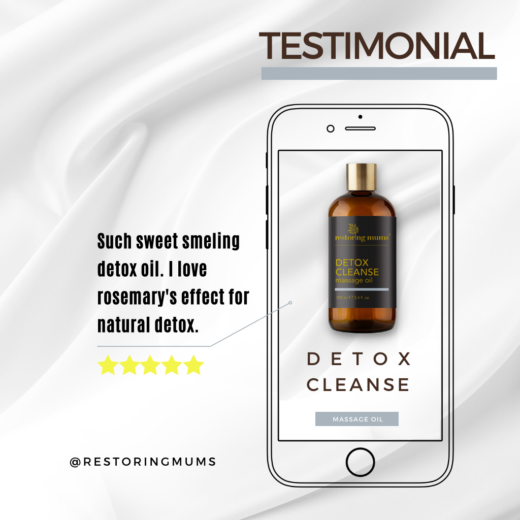 Combining the powerful detoxifying and purifying blend of Rosemary, Junniper Berry and Grapefruit, the Detox Cleanse Massage Oil is great to support body vitality.