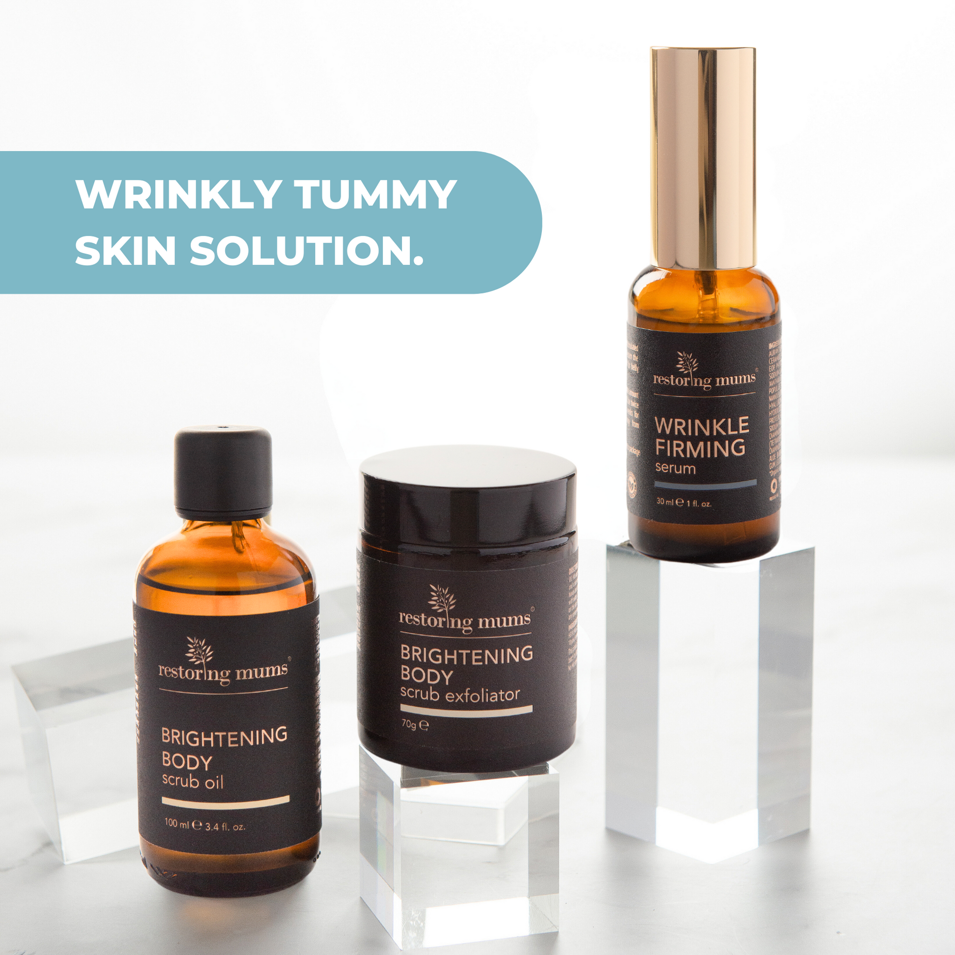 This concentrated peptide serum is formulated to reduce appearance of wrinkly skin and help tighten loose skin on the tummy and body. Great for neck creases and face lines too.